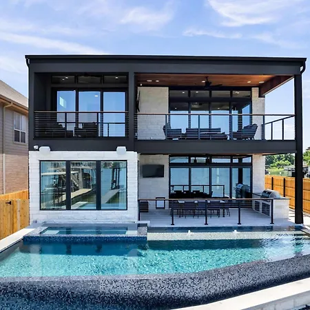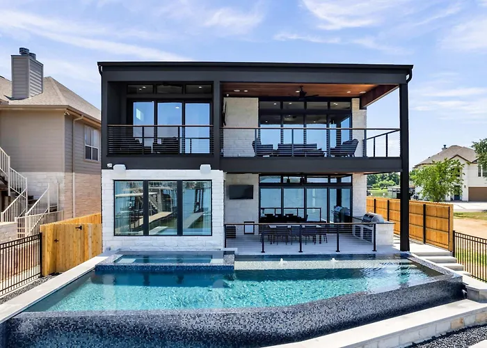 Situated along the serene shores of Granite Shoals, the Lakefront Stay For 16 With Pool Dock & Game Room offers a tranquil retreat for families and friends alike.